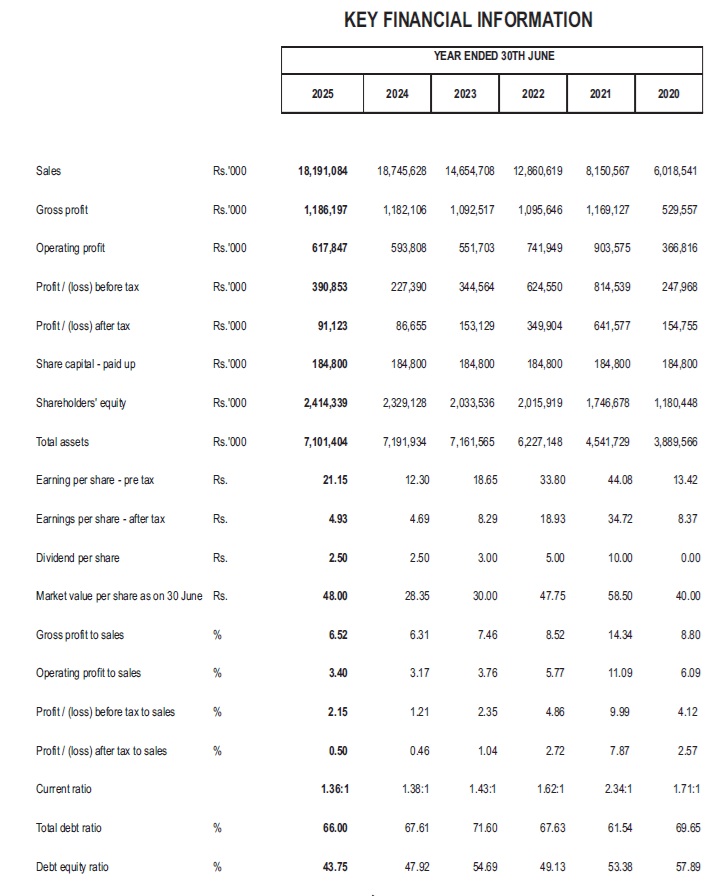 Financial Highlights – Prosperity Weaving Mills Ltd.