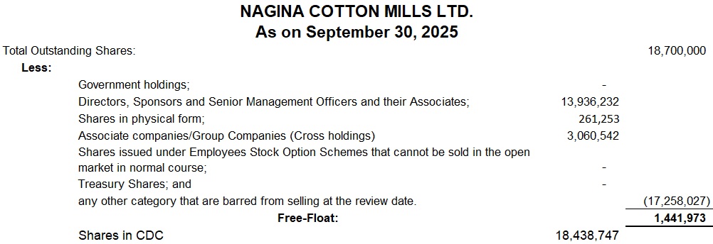 Free Float Shares Of The Company – Ncml